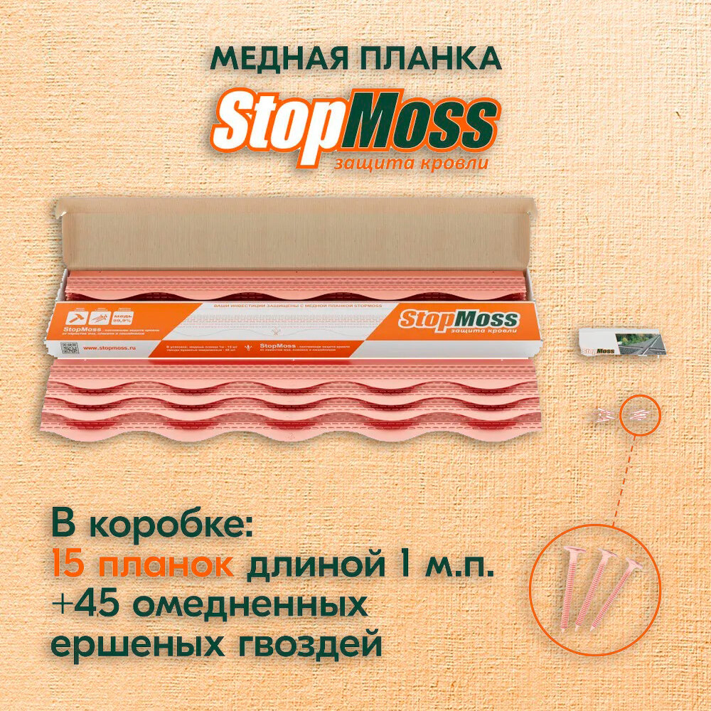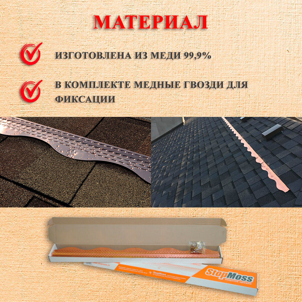 Отзывы на Защита гибкой черепицы от мха медная планка StopMoss Aquasystem (уп. 15 шт.)