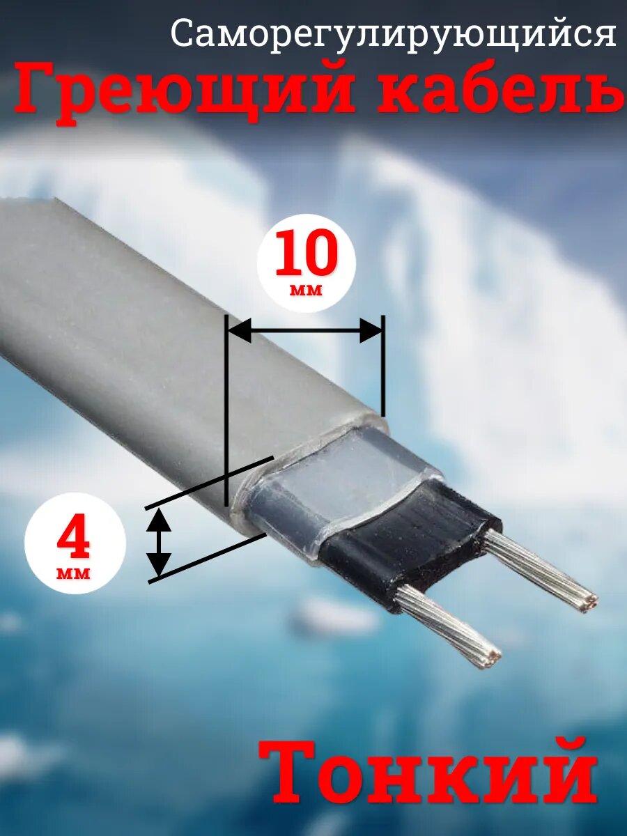 Саморегулирующийся греющий кабель на трубу Амирия, на отрез, для водопровода 5 метров информация: