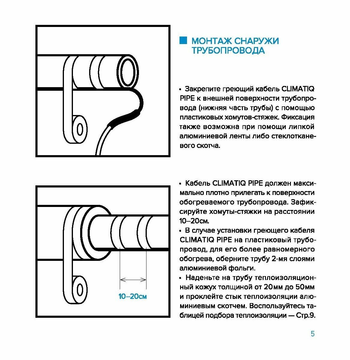 Комплект защиты трубопровода от замерзания CLIMATIQ PIPE-5m
