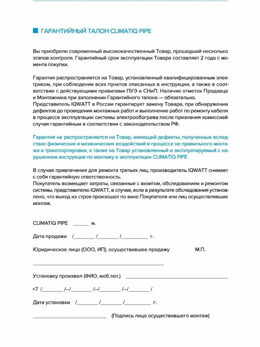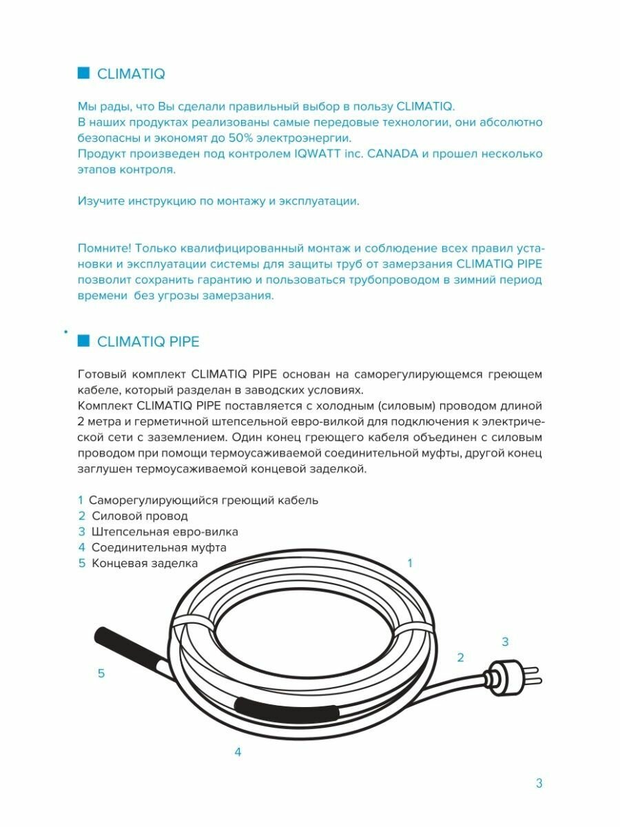Комплект для обогрева труб CLIMATIQ PIPE - 3 m информация: