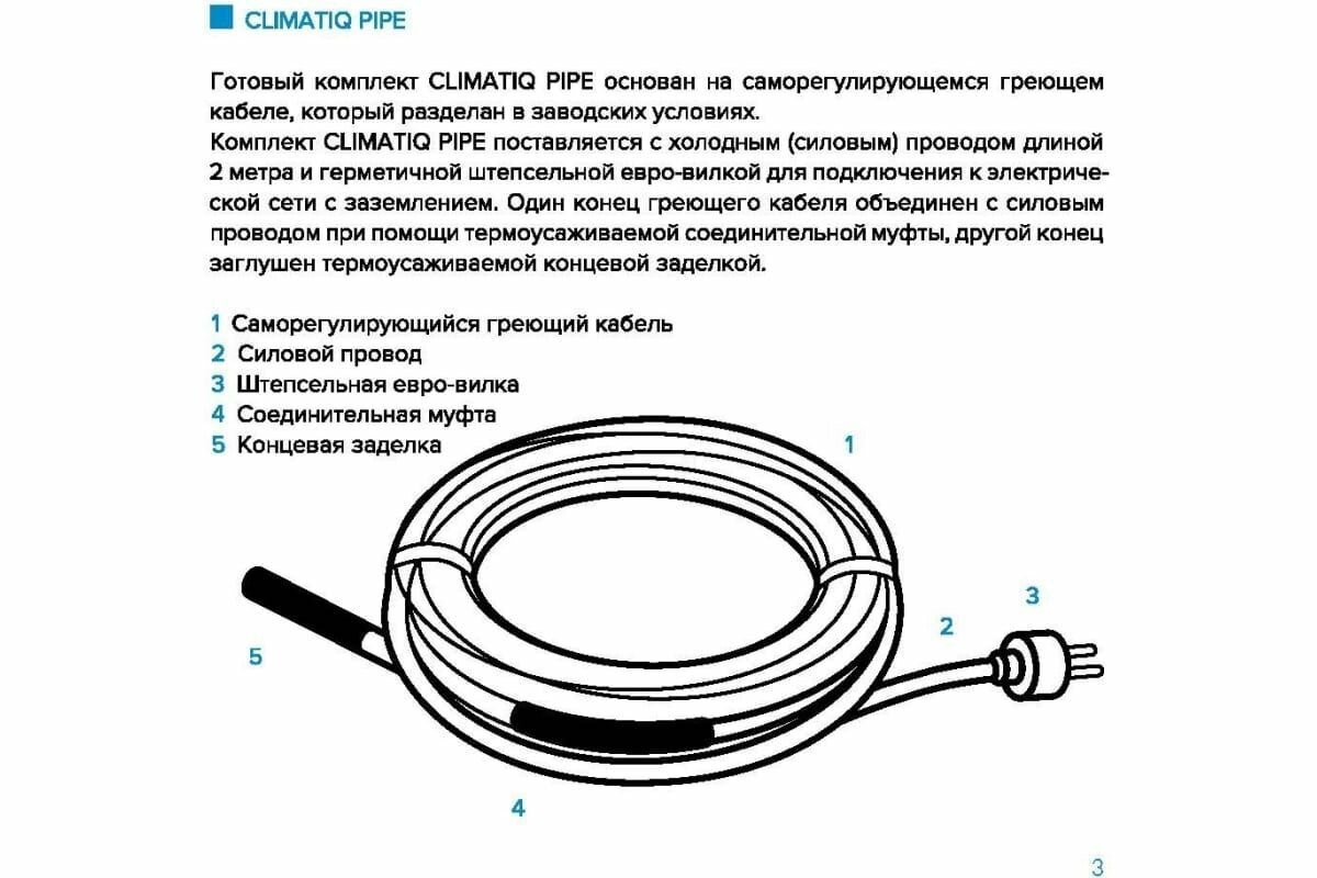 Комплект защиты трубопровода от замерзания CLIMATIQ PIPE-7m информация:
