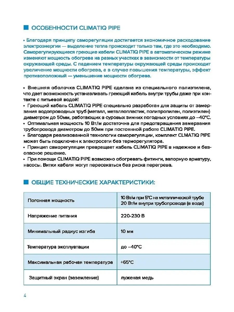 Система обогрева труб CLIMATIQ PIPE 4 м 40 Вт информация: