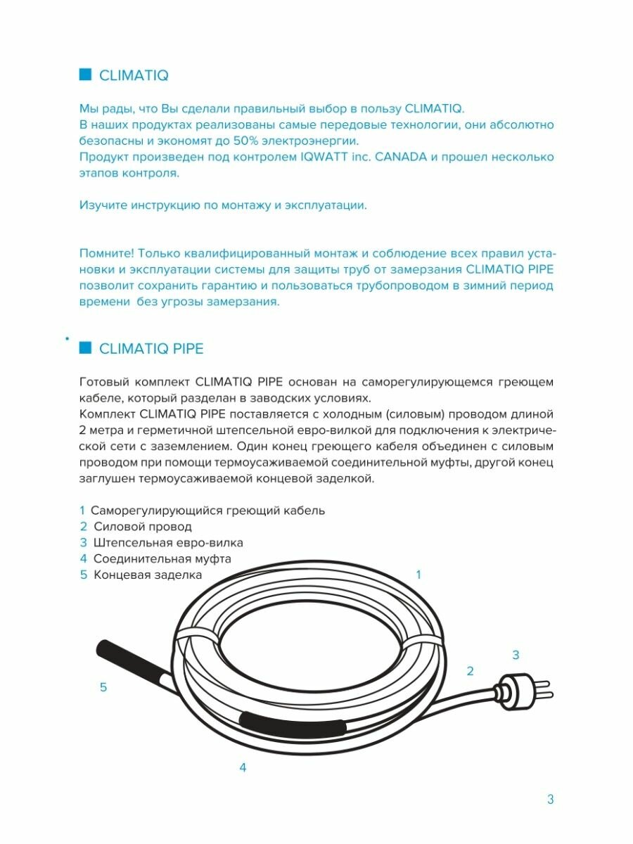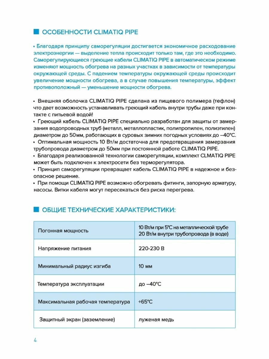 Система обогрева труб CLIMATIQ PIPE 28 м 280 Вт информация: