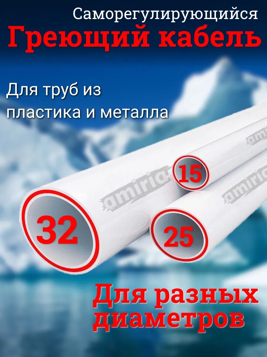 Греющий саморегулирующийся кабель в трубу для питьевой воды Амирия Коттедж на отрез 70 метров информация: