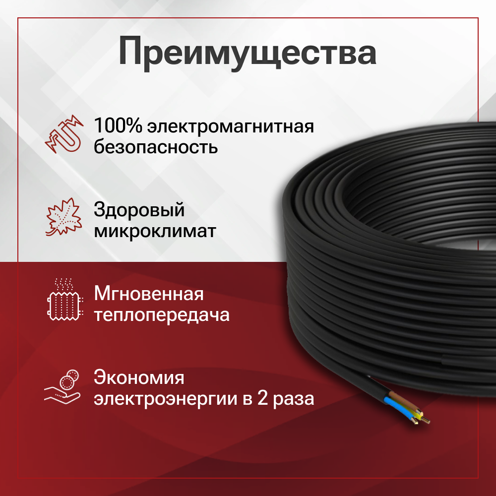 | Подробная комплектация | Греющий кабель; инструкция |