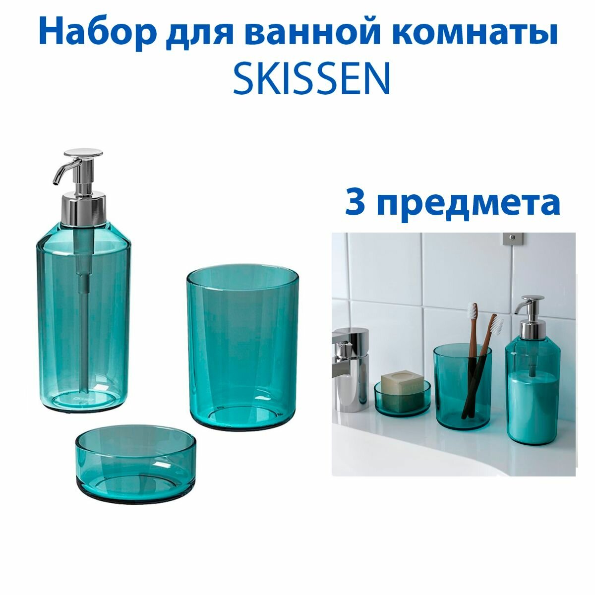 Отзывы на Набор для ванной комнаты - SKISSEN(скиссен), из стекла, цвет синий, 3 предмета в упаковке