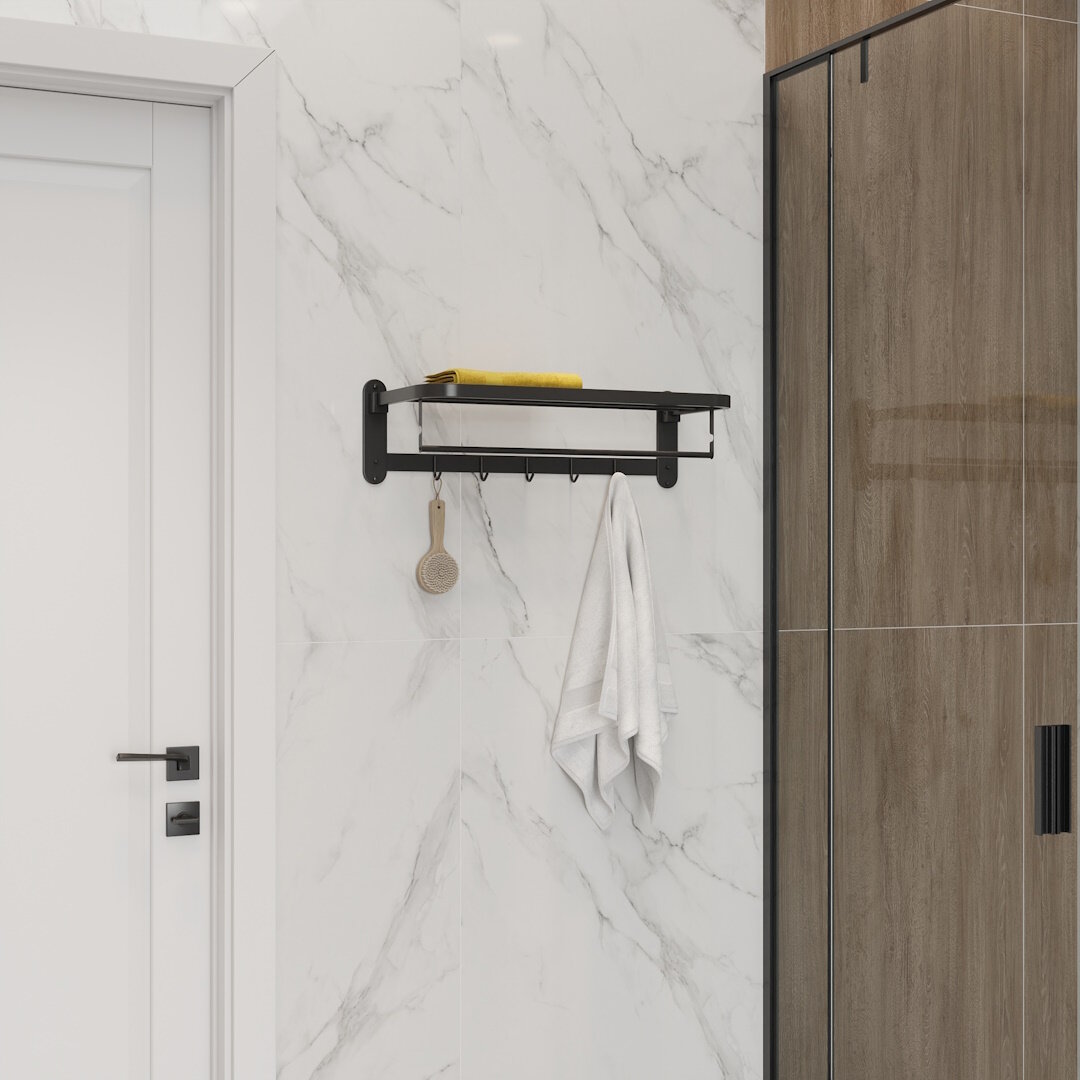 Отзывы на Полка для ванной Teymi Lina с крючками для полотенец, нержавеющая сталь, черная матовая T90230