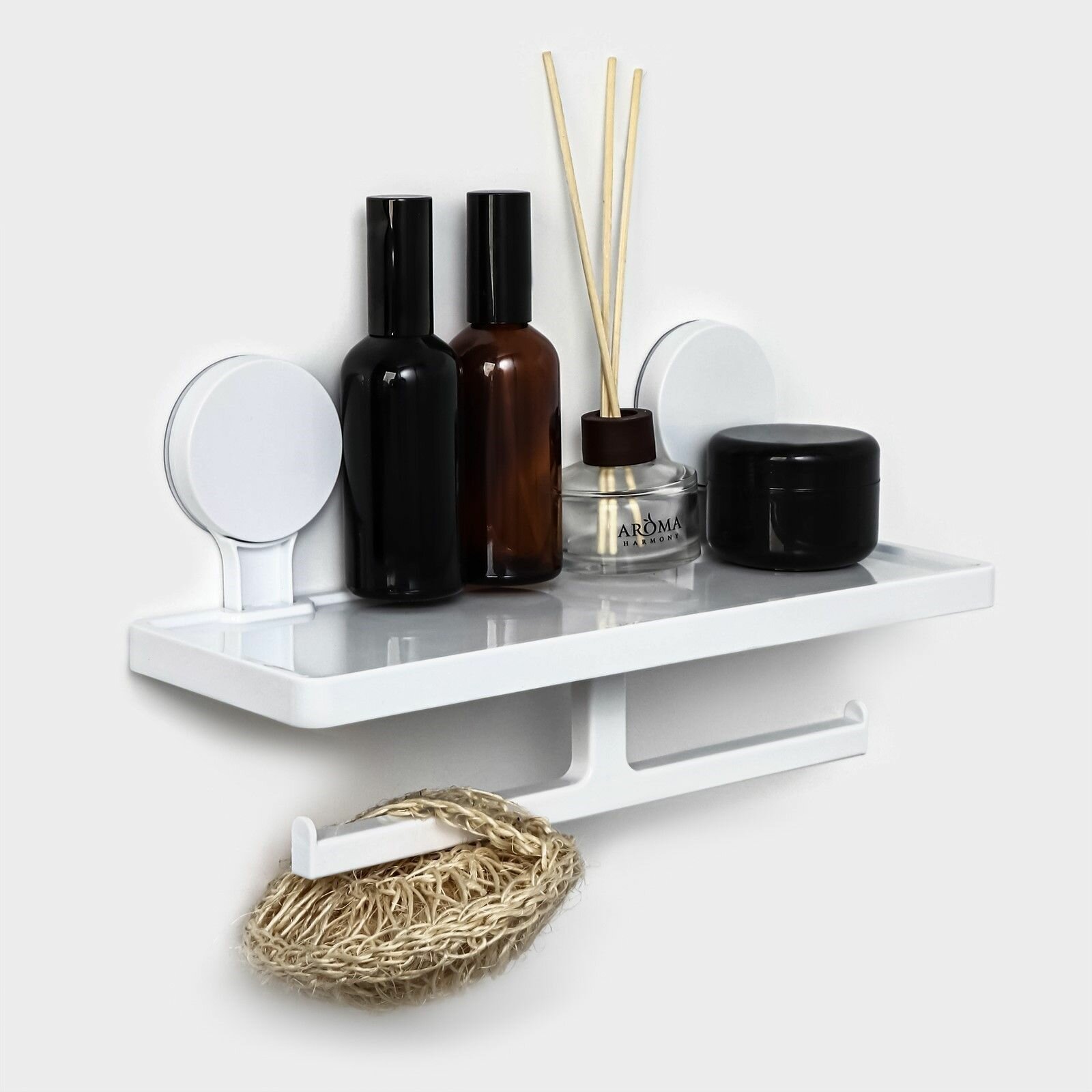 10 цен на Белая полка для ванных принадлежностей на липучках (17х32х11,5 см)