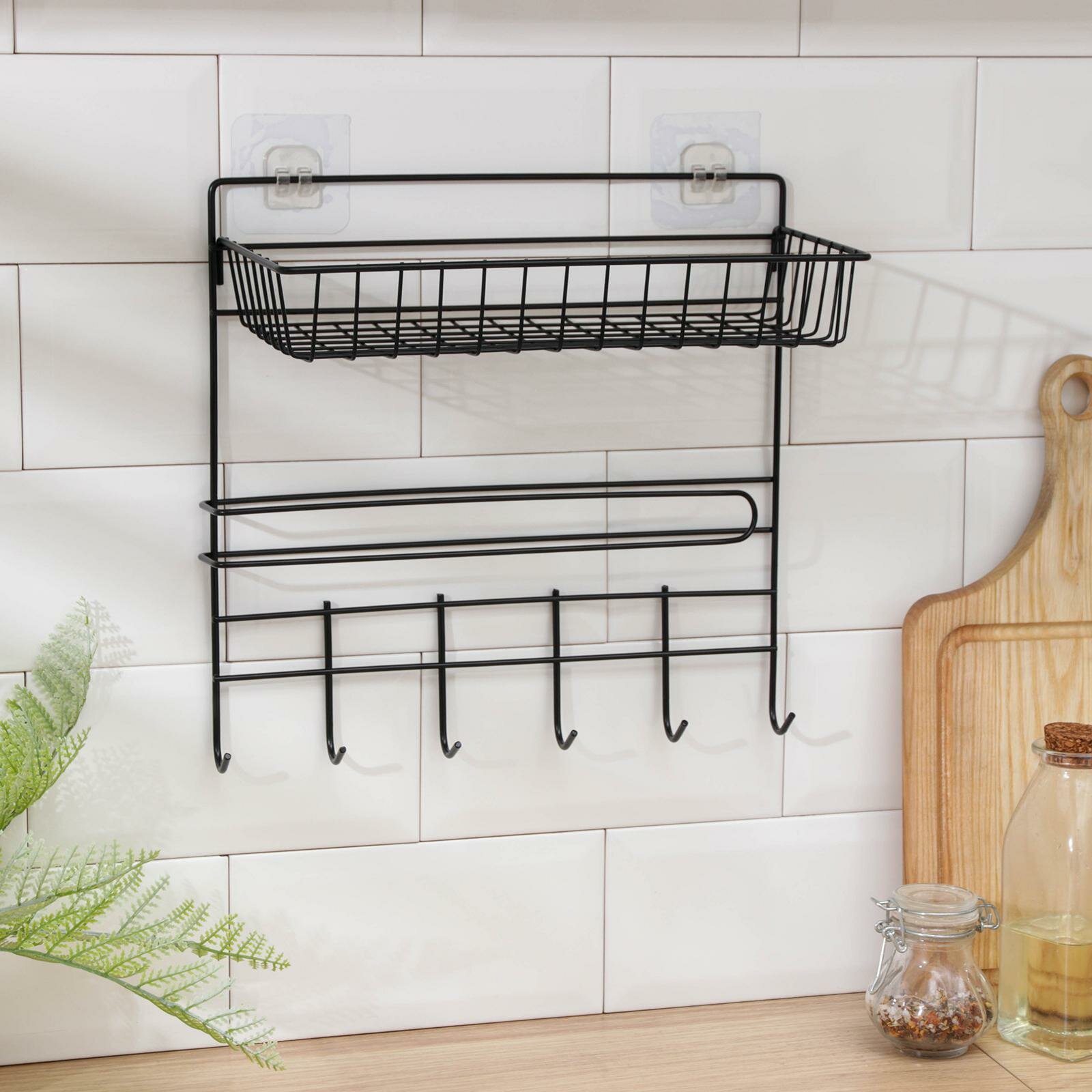 10 цен на Черная полка с держателем для полотенец и 6 крючками