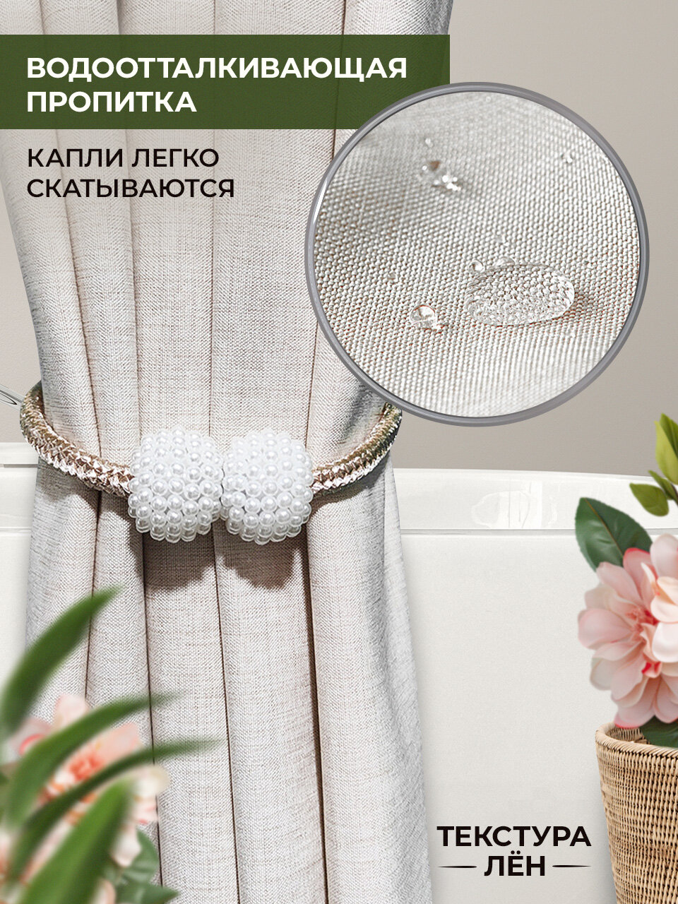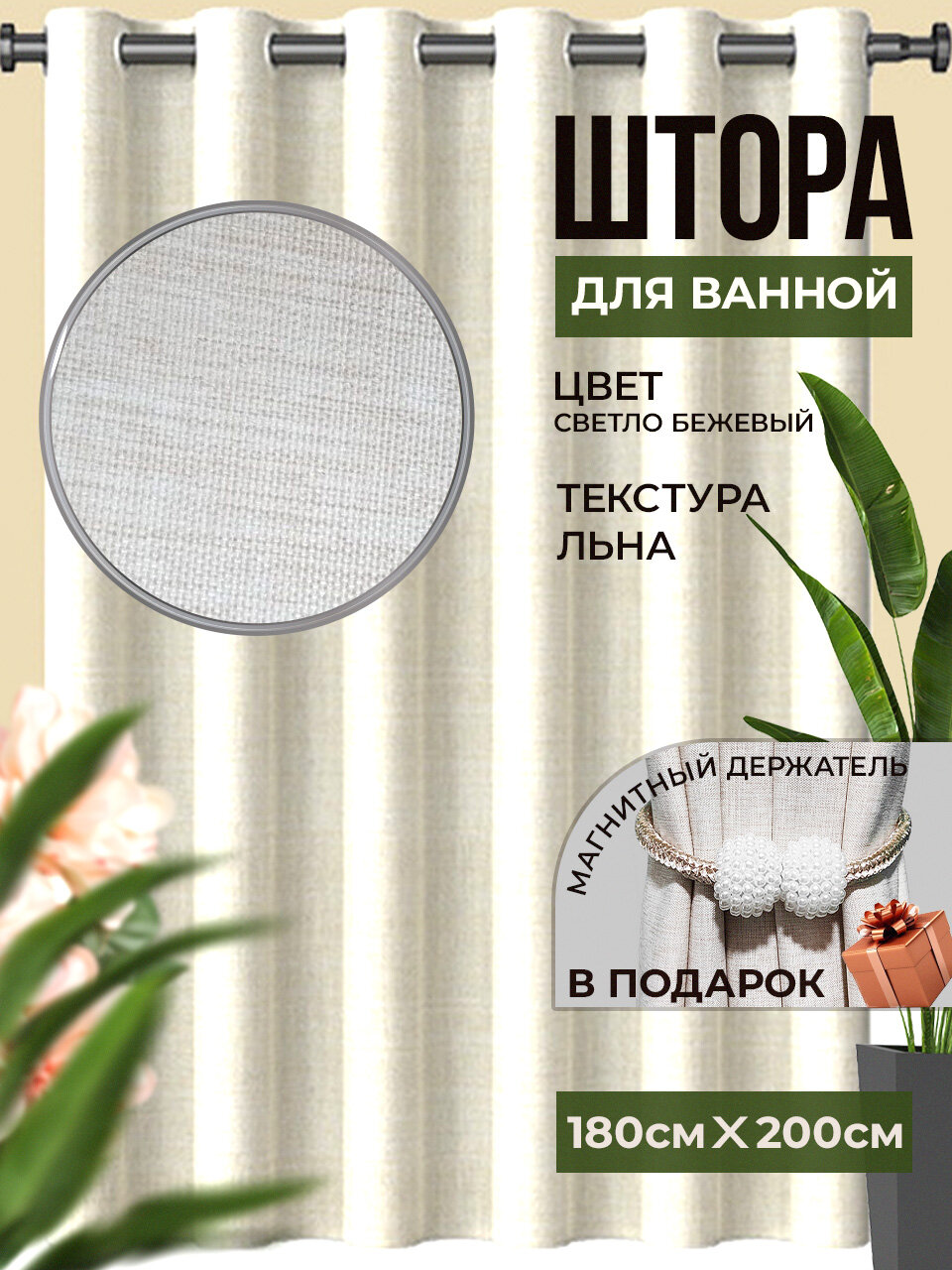 Штора для ванной комнаты тканевая 180*200 бежевая информация: