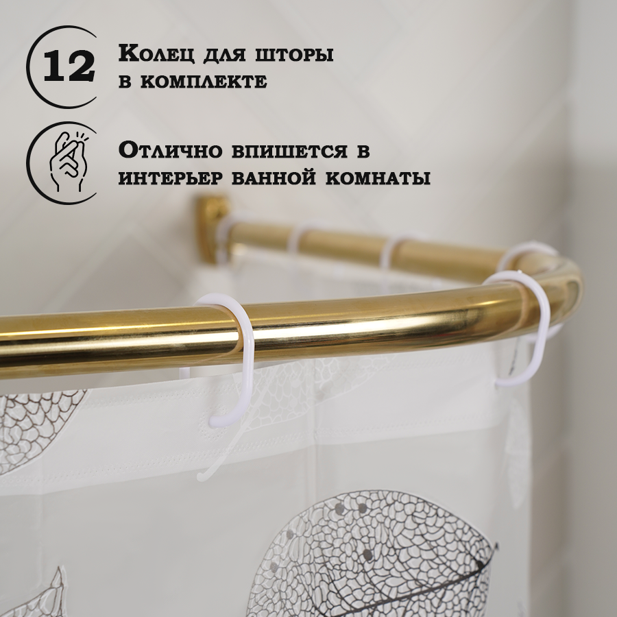 Штора для ванны Доляна «Чёрно-белые листья», 180×180 см, EVA информация: