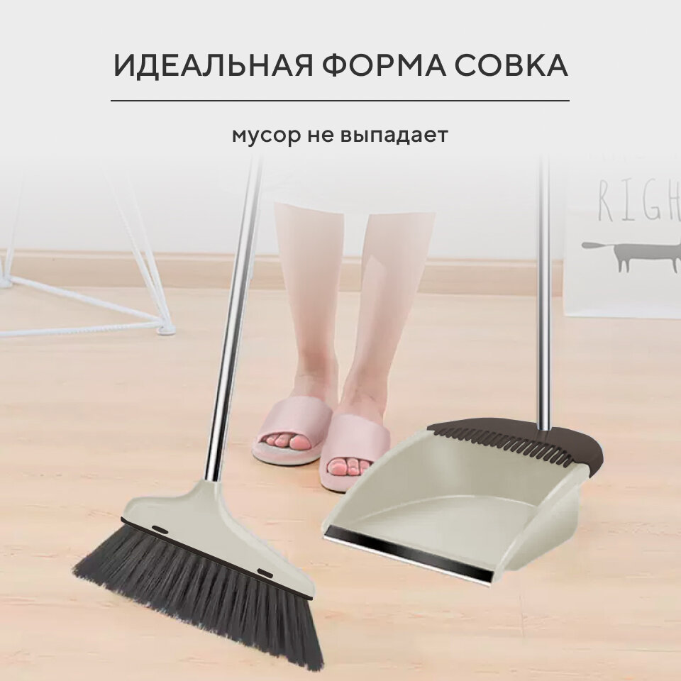 Отзывы на Веник с совком, щетка для уборки пола с ручкой Hausland, бежевый