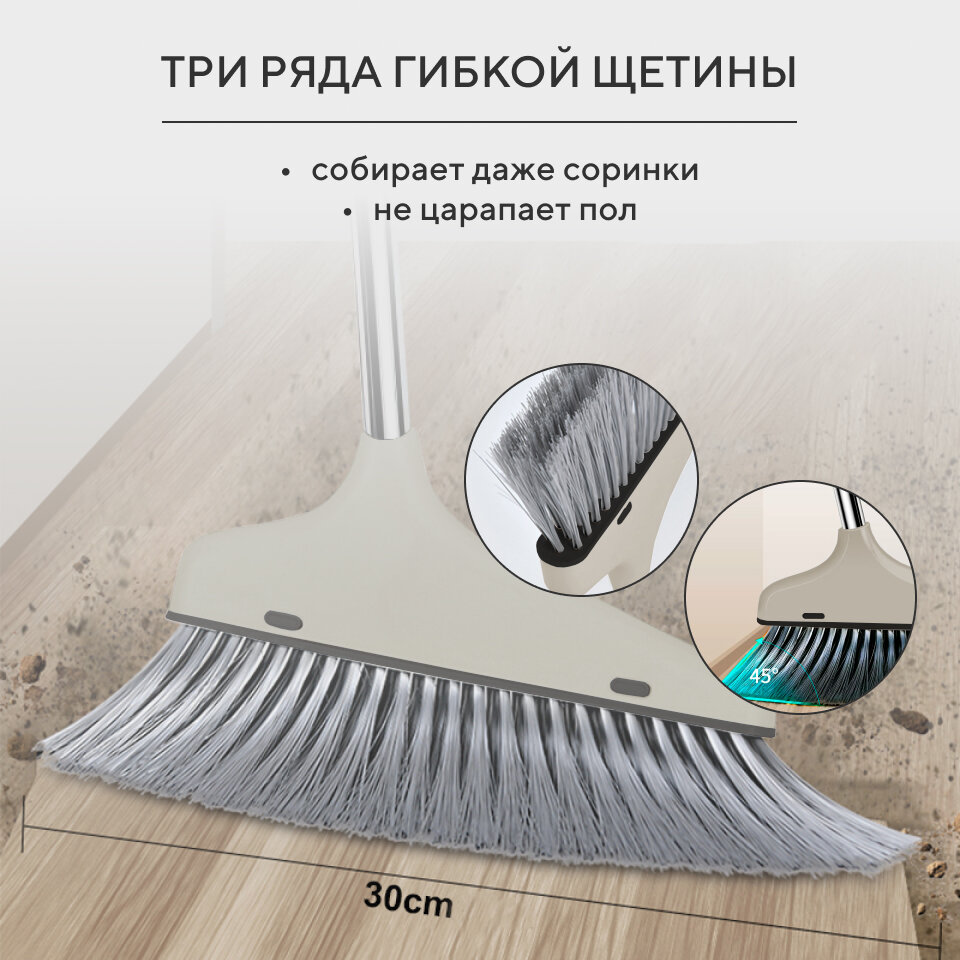 Щетка для уборки пола с ручкой и совком, длинная щетка для уборки, набор для уборки Hausland, серый 1 299 ₽