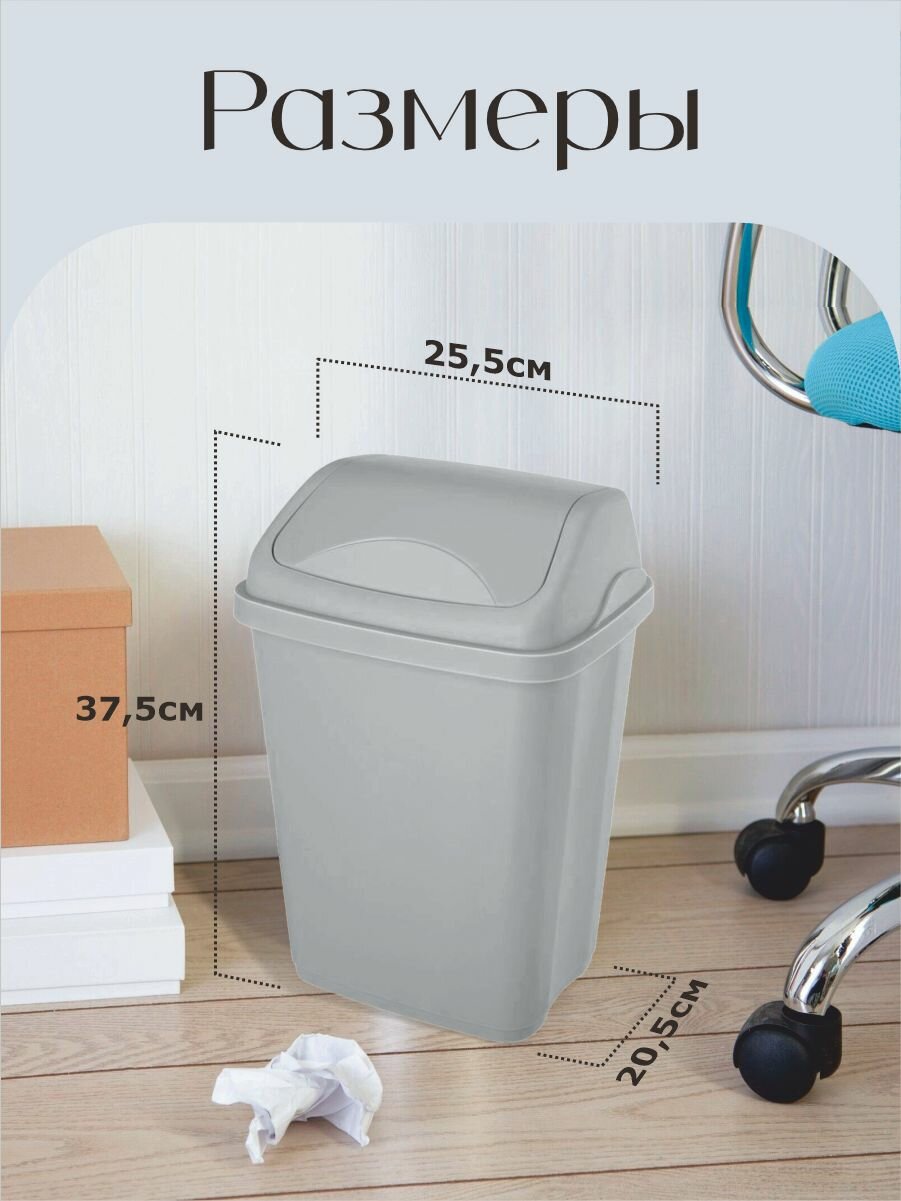 Контейнер с крышкой для мусора 10 л, серый информация: