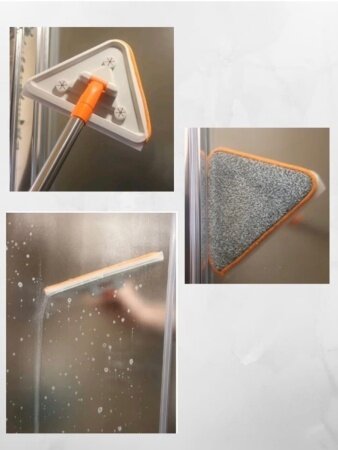 Отзывы на Окномойка фигурная треугольная стальная ручка, насадка из микрофибры, сгон силикон, 20х16,5х70(105) см