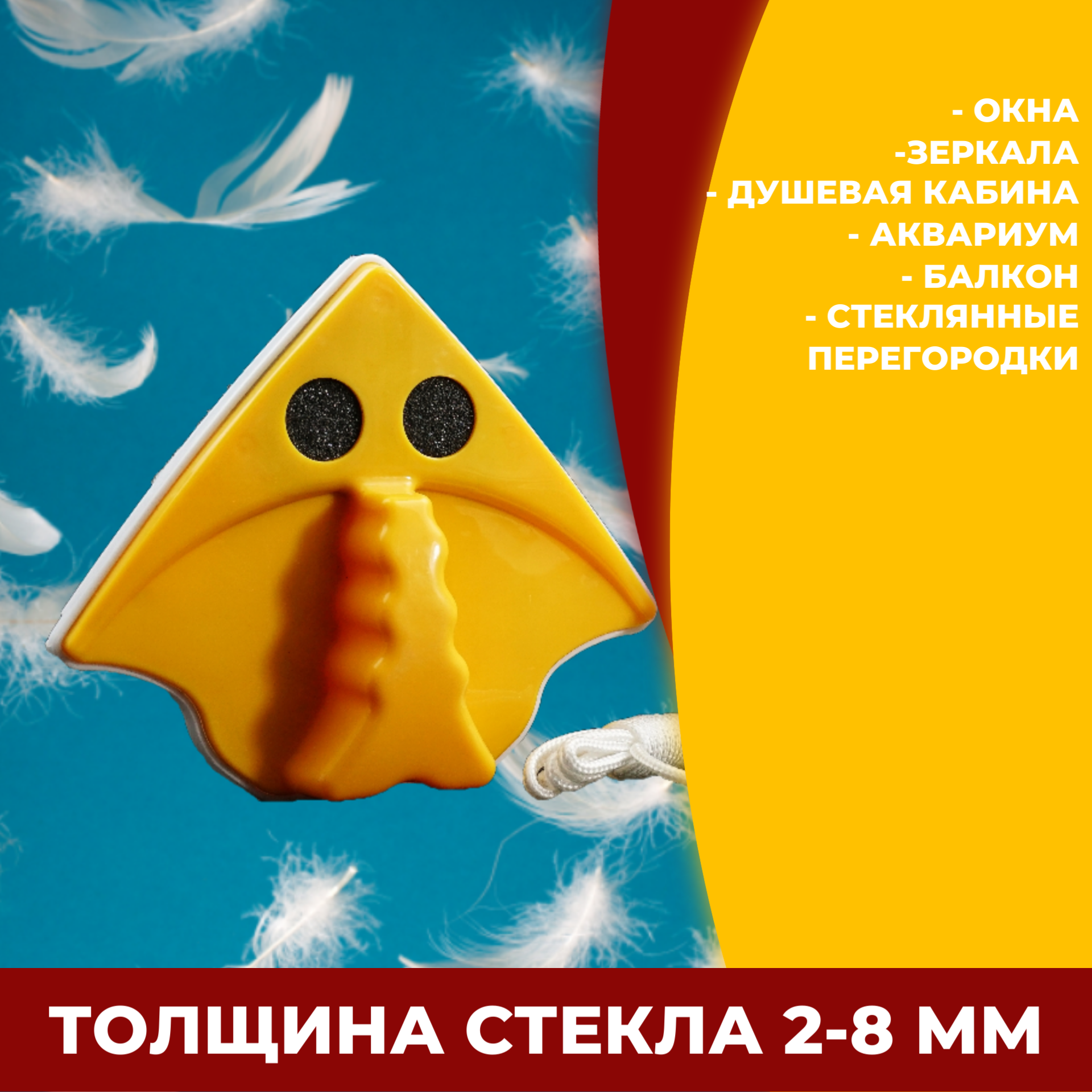 Магнитная щетка для мытья окон балкона / Стекломой окномойка / Скребок на магните для стекла