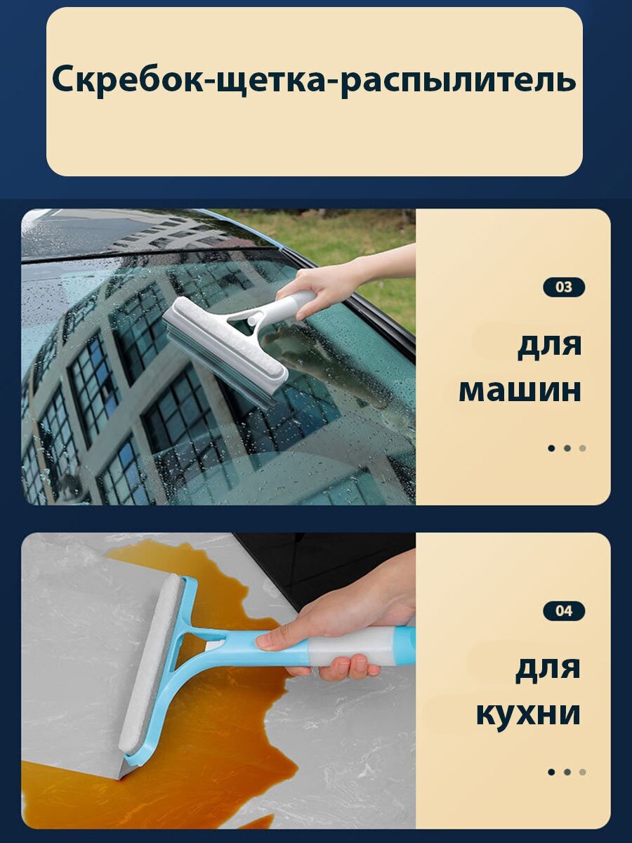 Стеклоочиститель с распылителем, Водосгон с распыллителем и щеткой для очистки, 3 в 1, Универчальный стеклоочиститель для дома и автомобиля