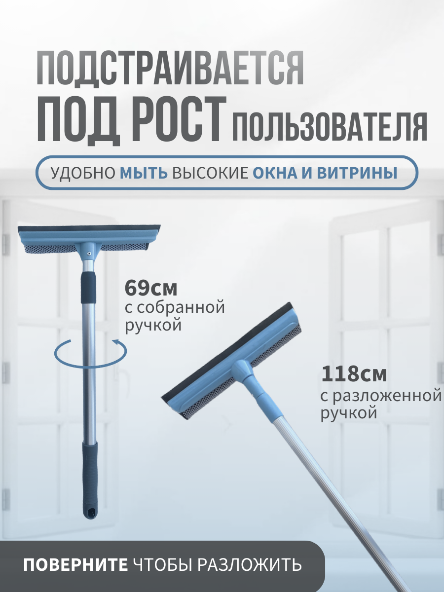 Отзывы на Щетка для мойки окон телескопическая Homy Mood, стекломой со сгоном 25х69-118 см, стеклоочиститель голубой