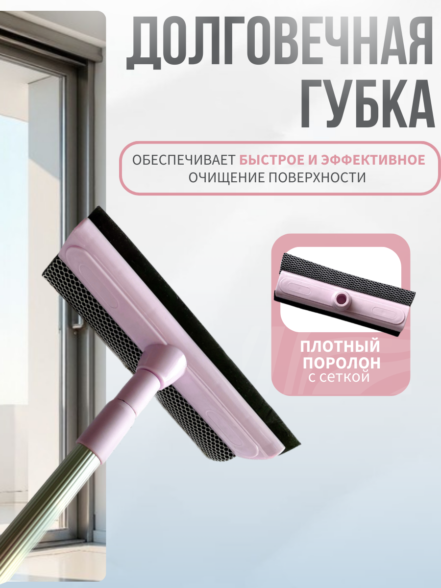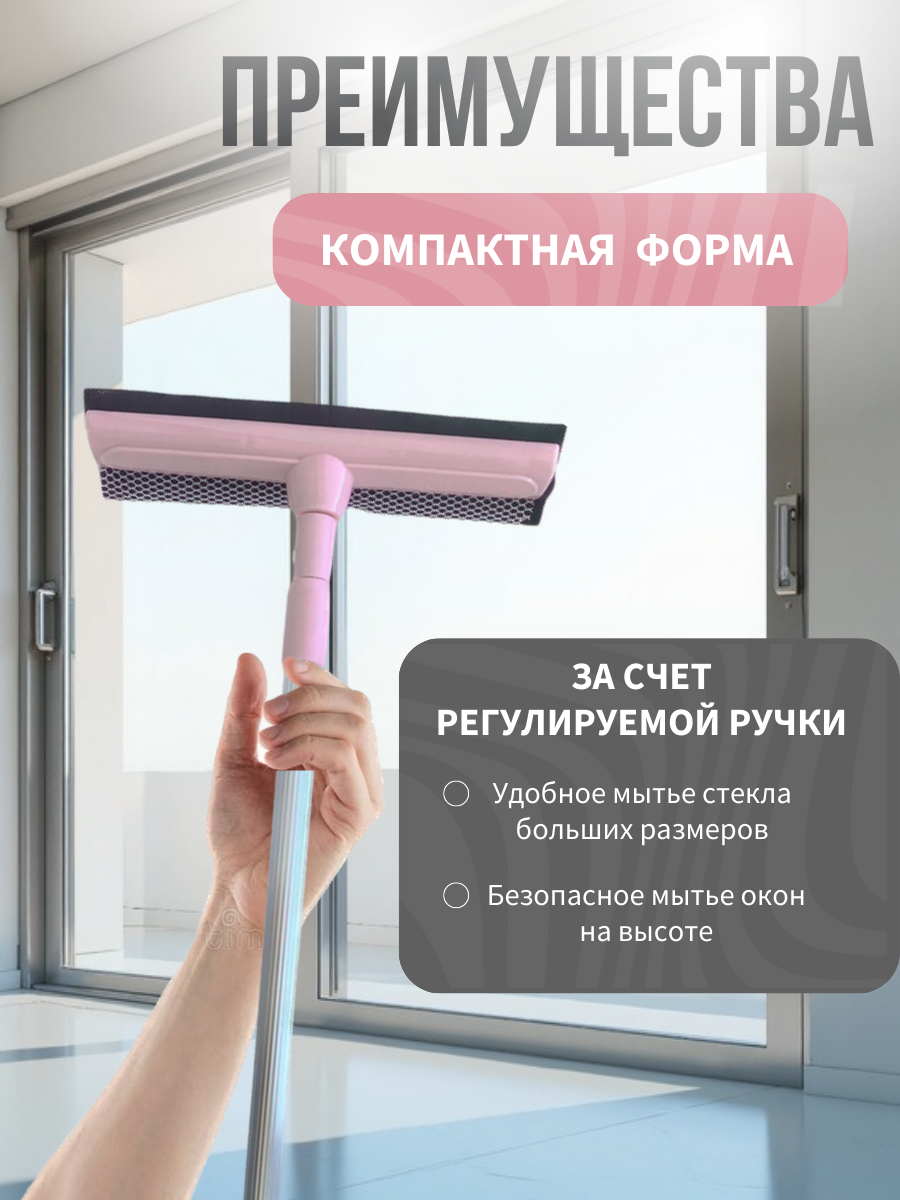 Отзывы на Щетка для стекол Homy Mood, стекломой с телескопической ручкой и водосгоном 25х69-118 см, стеклоочиститель розовый