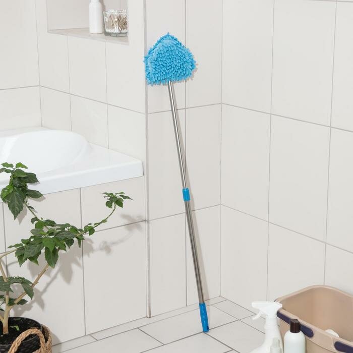 10 цен на Окномойка с телескопической металлической ручкой Доляна, 14×16×54(86) см, поворотная головка, микрофибра, цвет синий