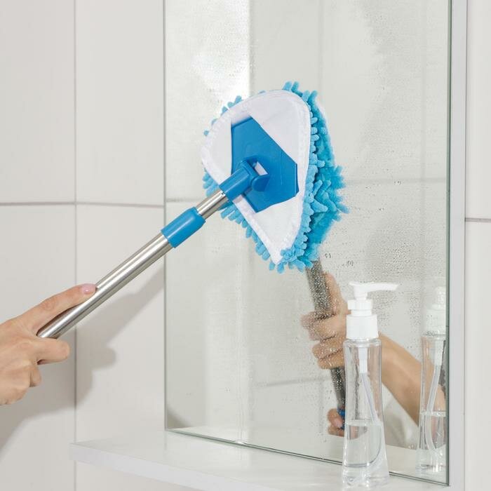 Отзывы на Окномойка с телескопической металлической ручкой Доляна, 14×16×54(86) см, поворотная головка, микрофибра, цвет синий