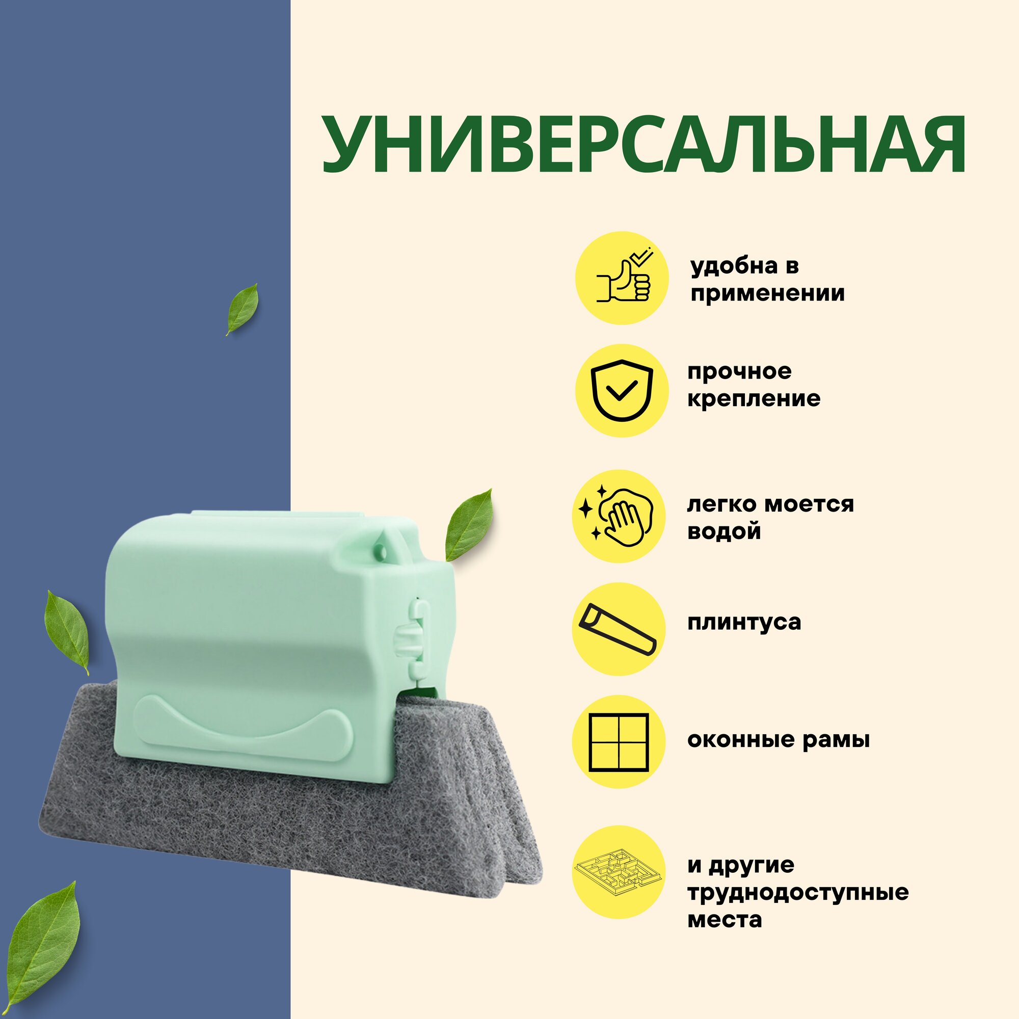 Салфетка для уборки, щетка для мытья окон, углов и зазоров, салфетка-губка набор 1 шт + 2 сменные салфетки информация:
