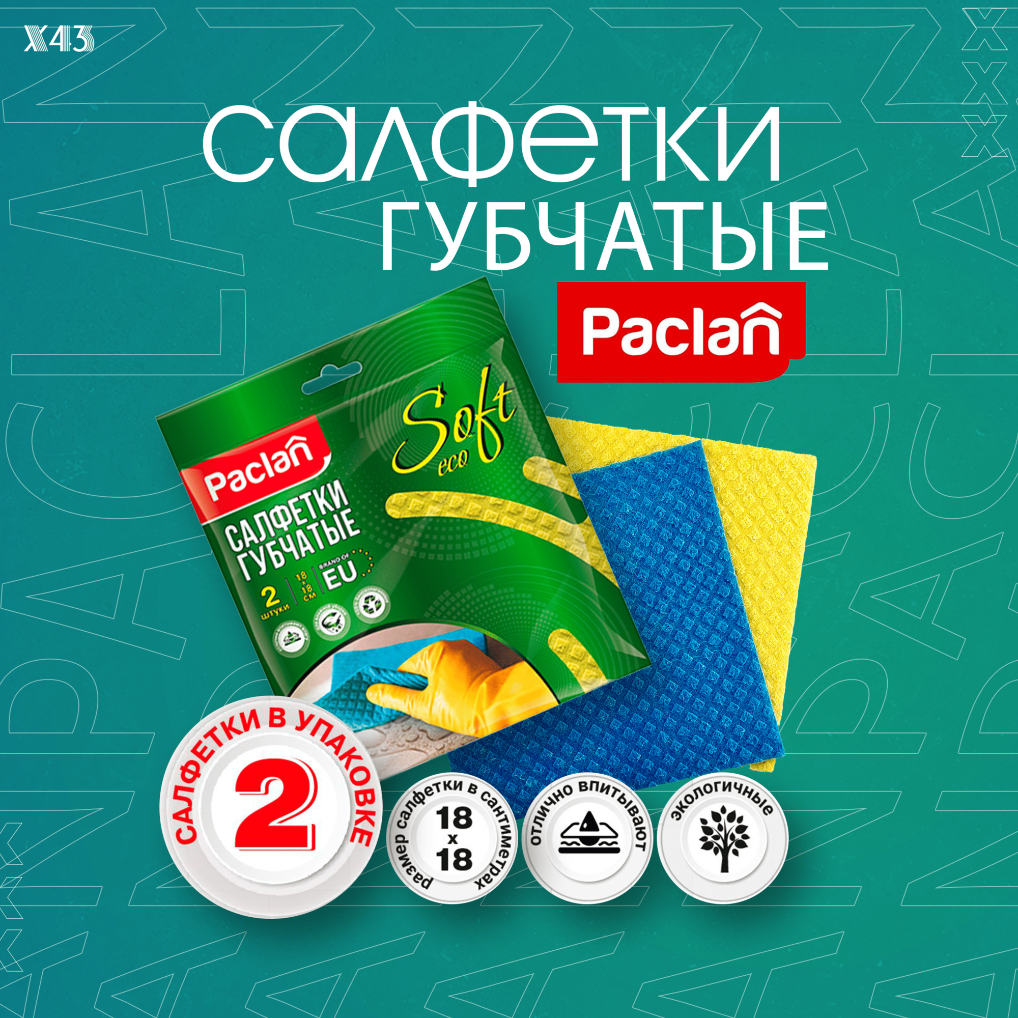 Салфетка губчатая Paclan Soft Eco / Салфетки губчатые для уборки, чистки, мойки / 2 шт в упаковке / размер 18х18 информация: