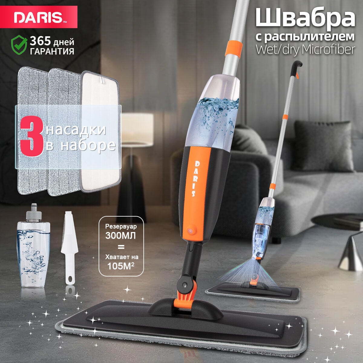 Швабра-распылитель DARIS, многоразовая, моющаяся, 3 насадки, бытовая, кухонная швабра для деревянного пола