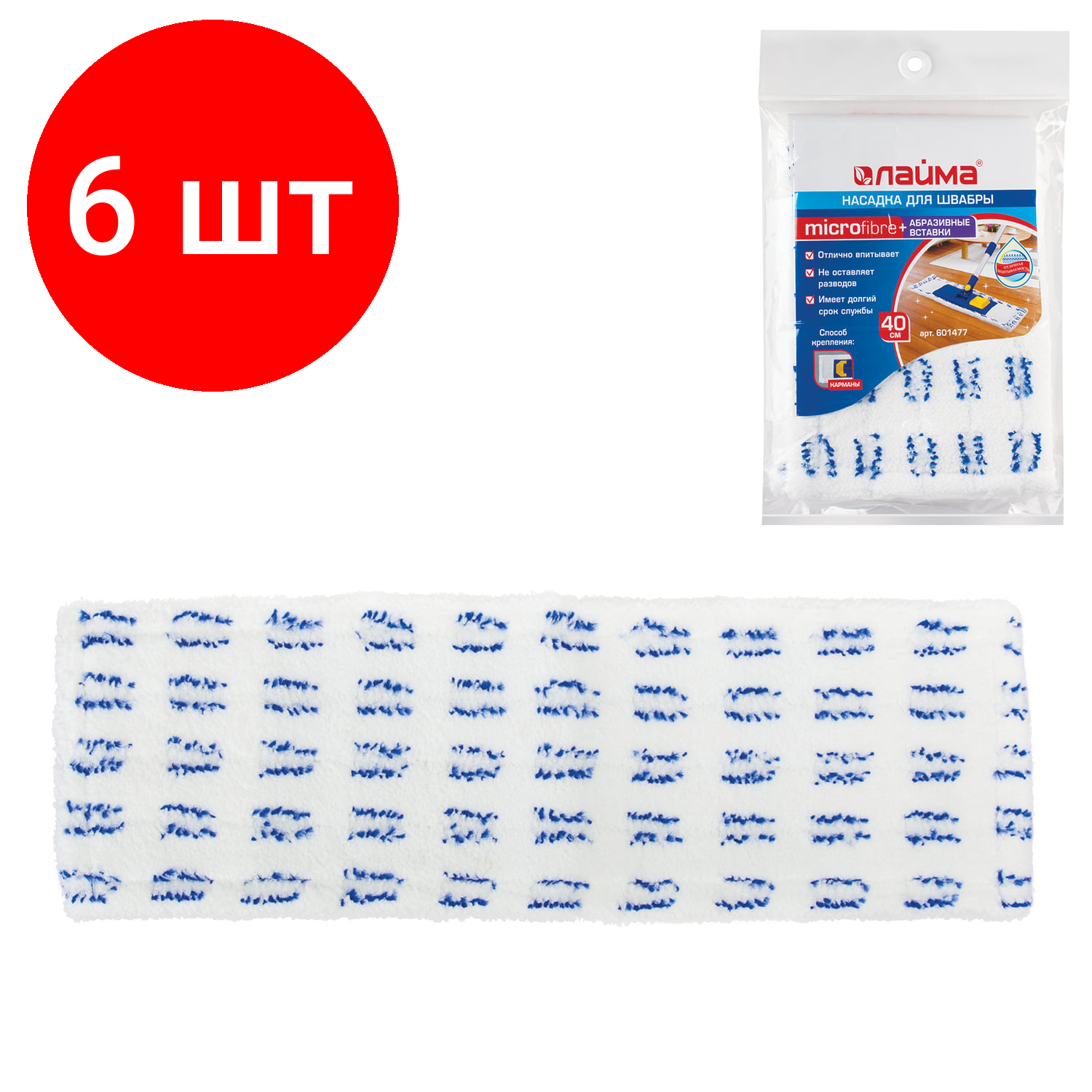 10 цен на Комплект 6 шт, Насадка МОП плоская для швабры/держателя 40 см, карманы (ТИП К), микрофибра/абразив, упаковка, LAIMA, 601477