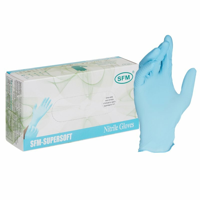 Перчатки нитриловые SFM SUPERSOFT, M 100 пар, голубые