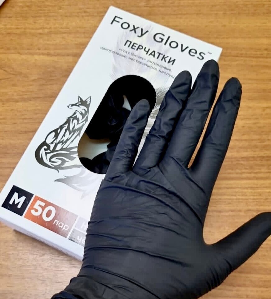 Отзывы на Перчатки "Foxy Gloves" нитриловые, одноразовые, нестерильные, неопудренные, 100 штук, 50 пар, размер M, черные