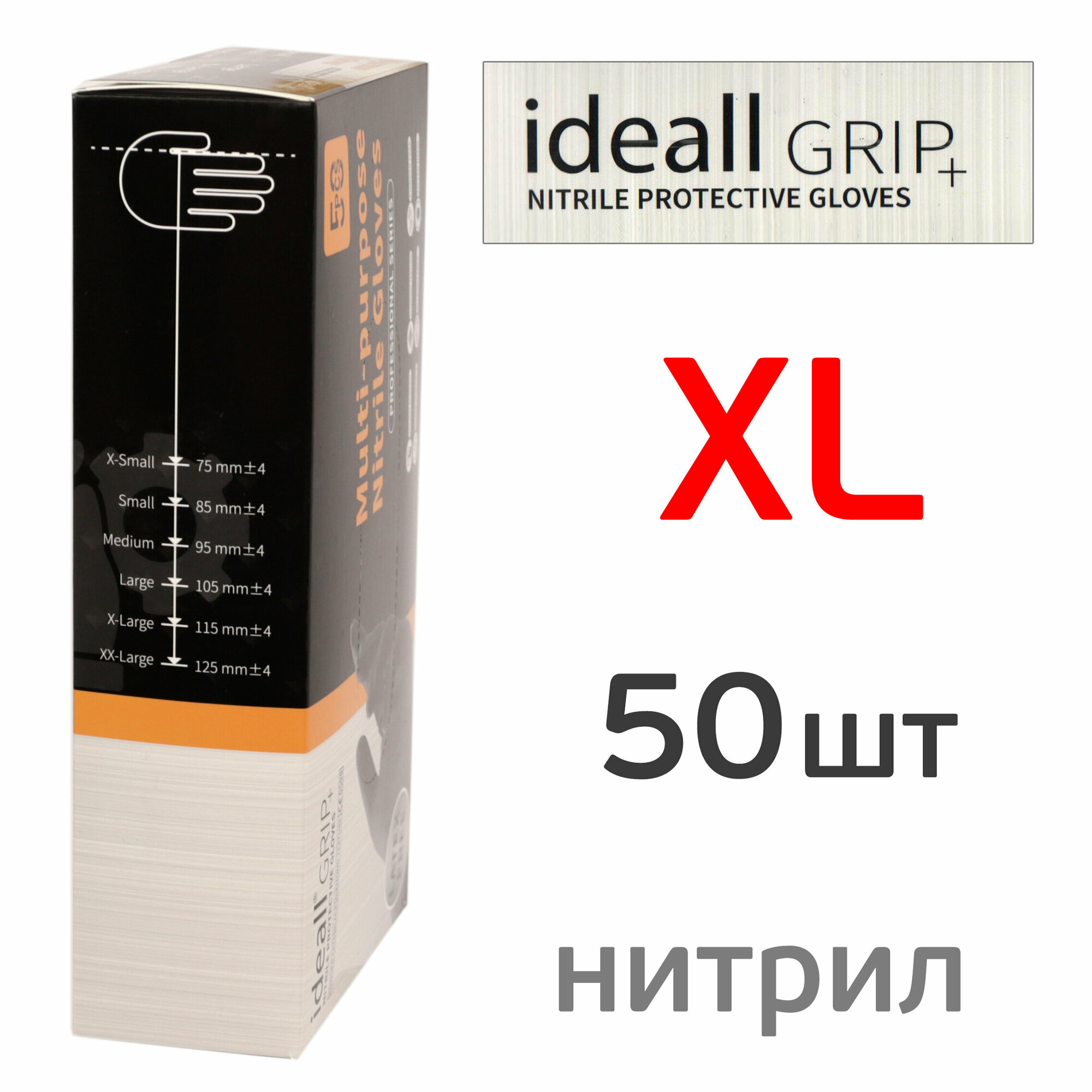 Перчатки нитриловые ideall GRIP+ (р.XL; 50шт; черные) повышенной стойкости к растворителю информация: