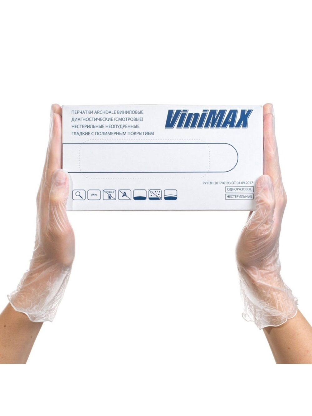 10 цен на Перчатки виниловые неопудренные гладкие смотровые ViniMax, размер S, 50пар/уп