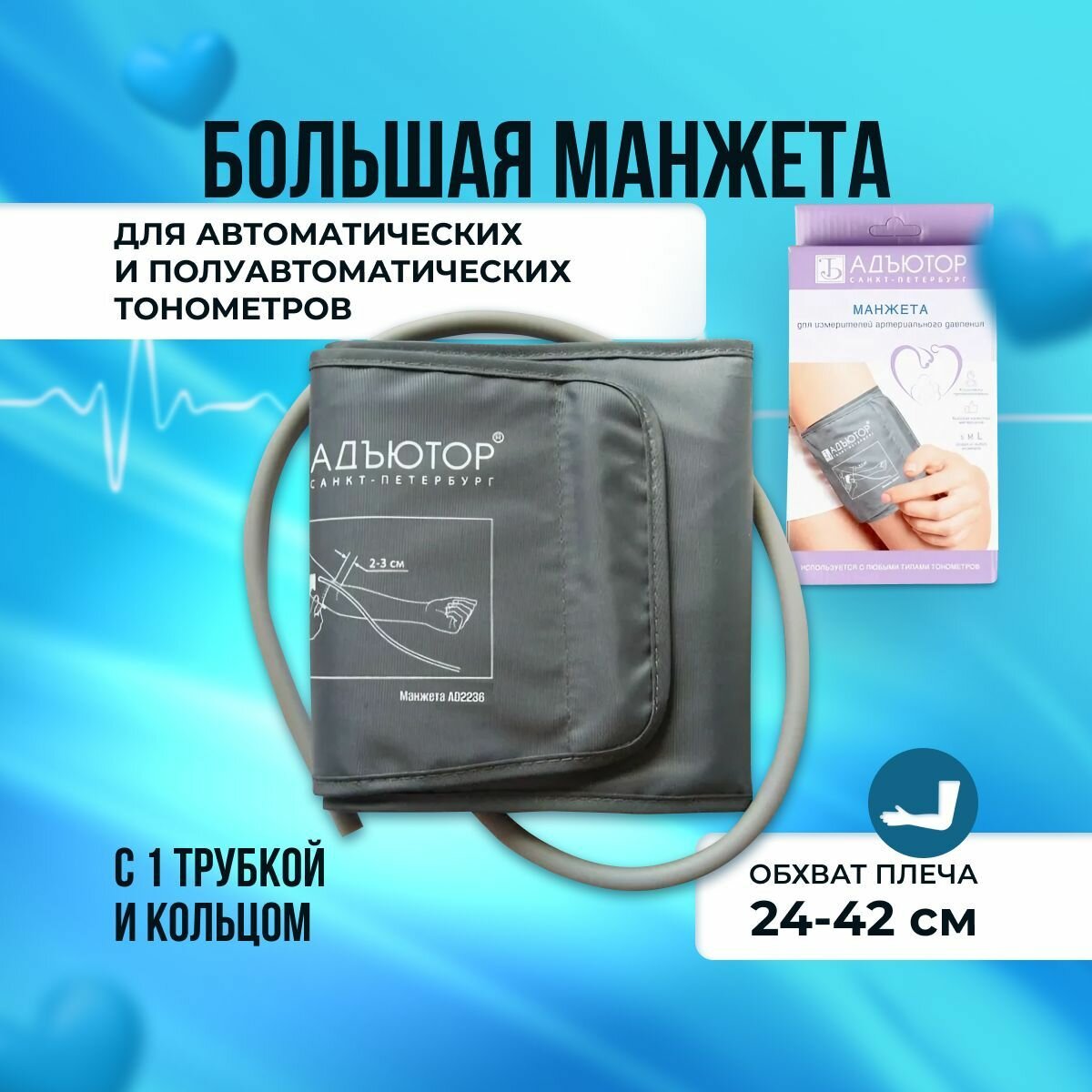 Манжета для тонометра 24-42 см, большая, с одной трубкой, с кольцом. Для автоматического и полуавтоматического цифрового тонометра информация: