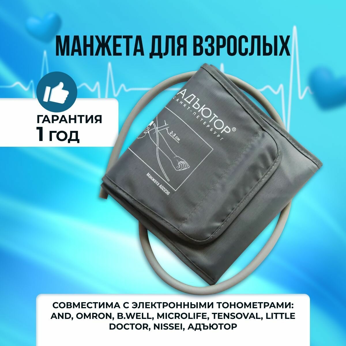 10 цен на Манжета для тонометра 24-42 см, большая, с одной трубкой, с кольцом. Для автоматического и полуавтоматического цифрового тонометра