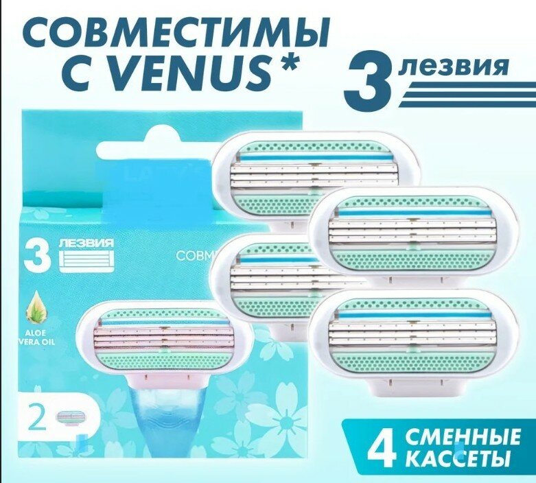 Женские сменные кассеты для бритья совместимые с Venus/Венус ,4 кассеты. информация: