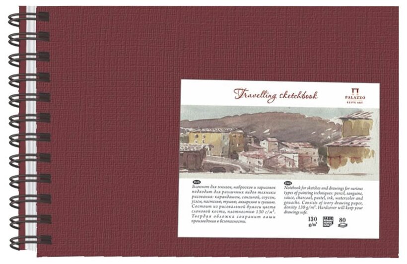 Блокнот "Travelling sketchbook" Лилия-Холдинг А5, 148х210 мм, Ландшафт, бумага слоновая кость 130 г/м2, 80 л, гранат, пружина слева.