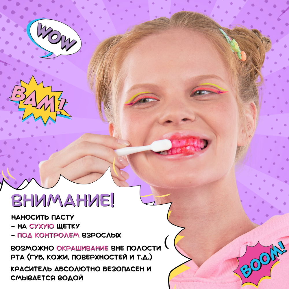 Зубная паста - маркер MontCarotte Grape BOOM, со вкусом винограда, индикатор зубного налета, 2 в 1, обучение чистки зубов, 30 мл, Монткаротт, Италия