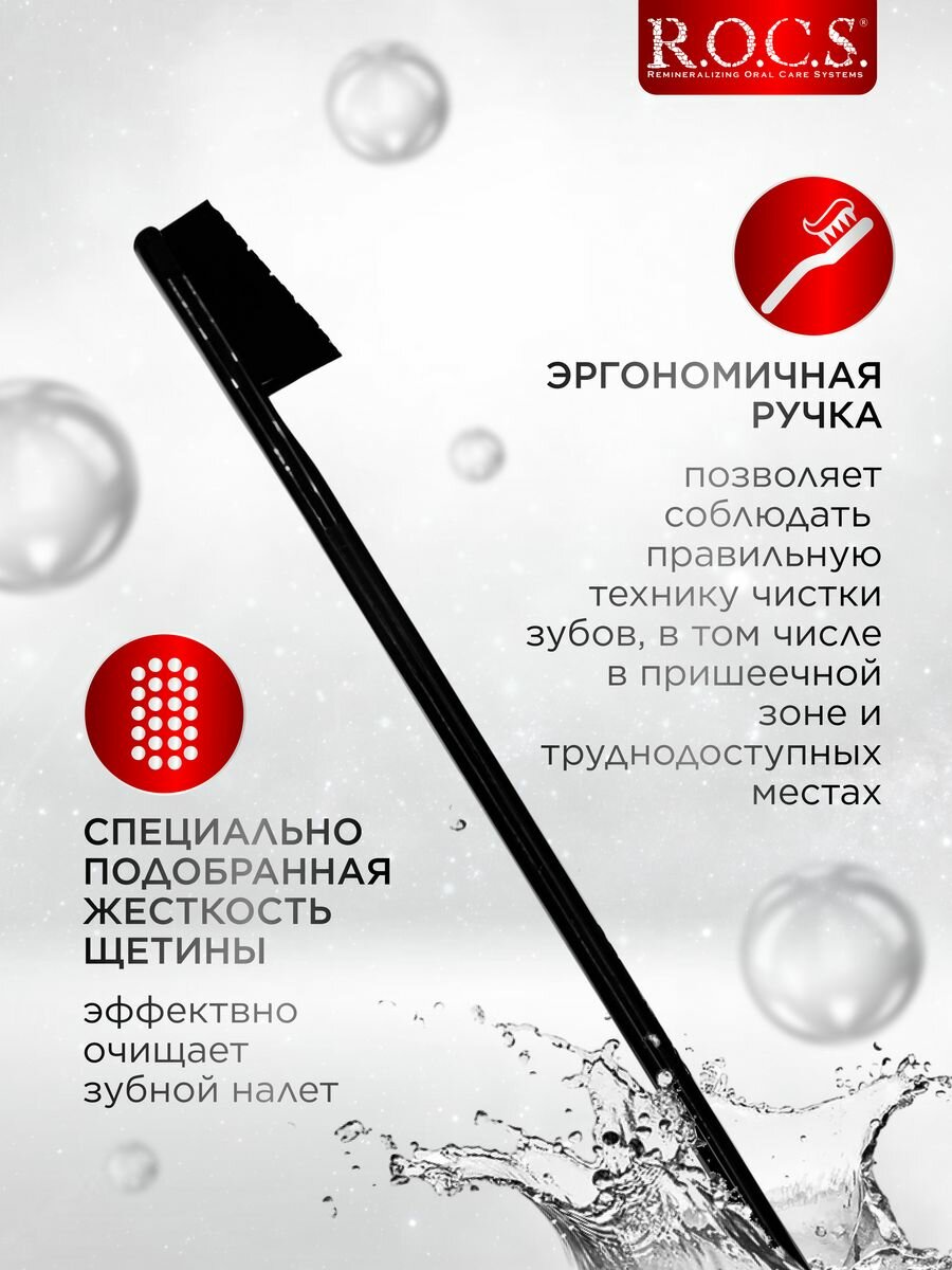 Зубная щетка R.O.C.S. жесткая, черная информация: