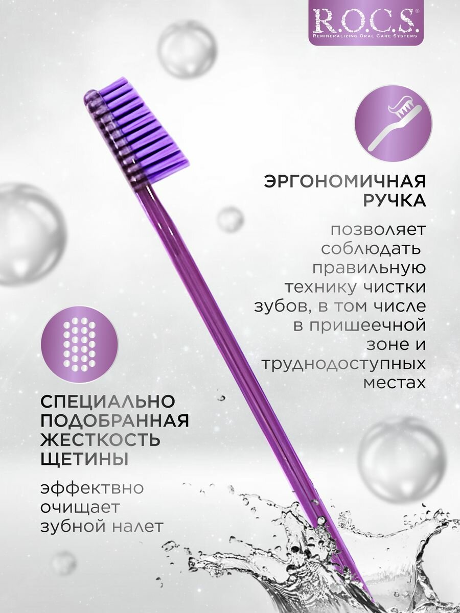 10 цен на Зубная щетка R.O.C.S, фиолетовая, жесткая