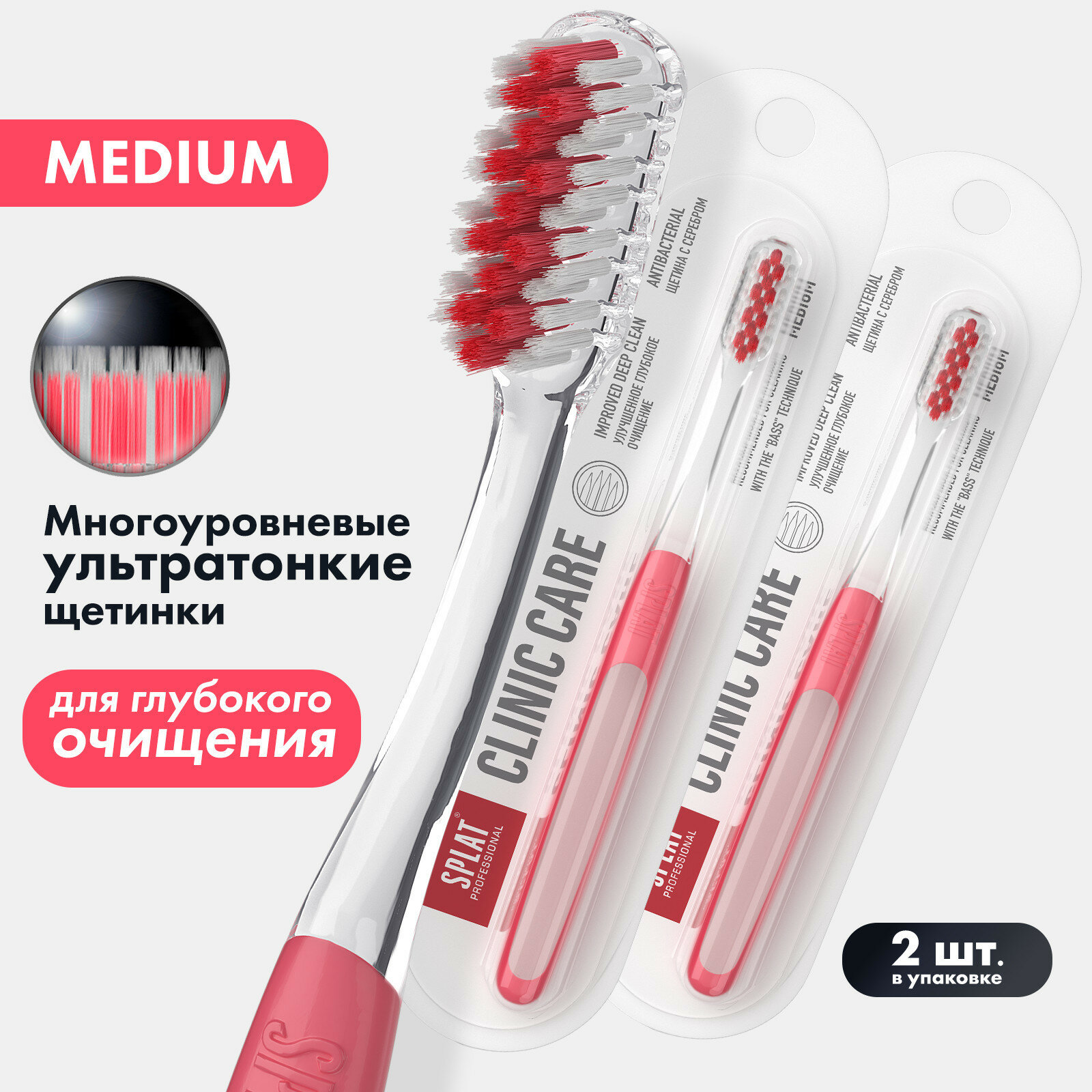 Набор инновационных зубных щеткок SPLAT Professional CLINIC CARE Medium. Средняя. Коралловая. (2 шт) информация: