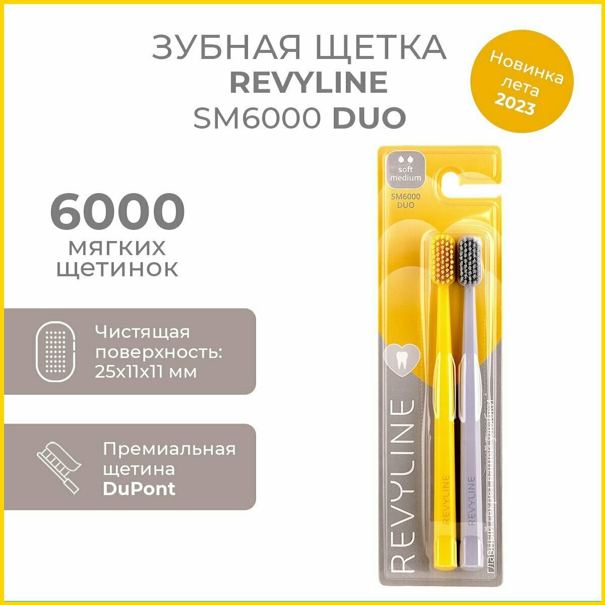 Набор зубных щеток /Revyline/ SM6000 Duo жёлтая+серая информация: