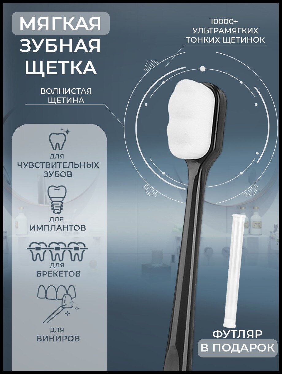 Мягкая зубная щетка ForAll 10000+ с футляром, черная, волнистая щетина, для зубов, десен и брекетов 263 ₽