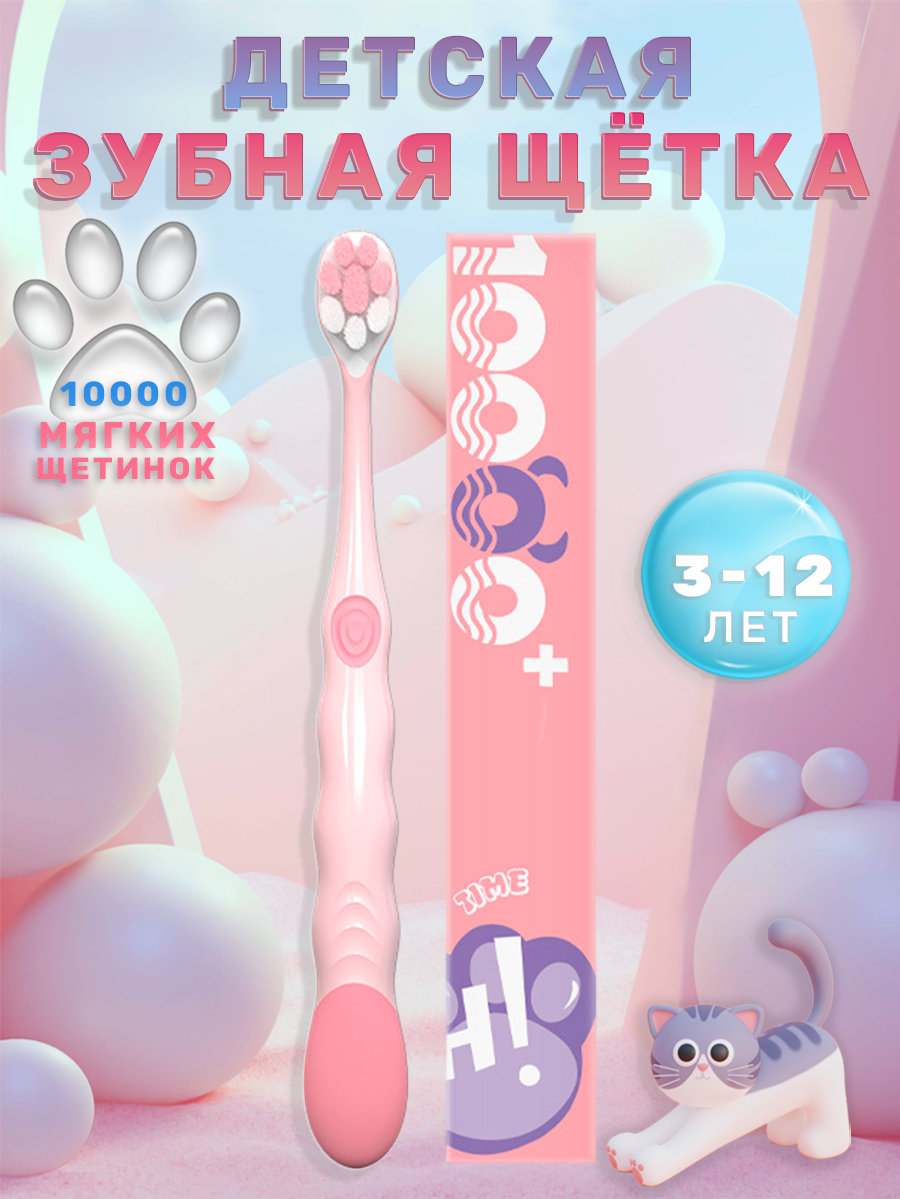 10 цен на Детская зубная щётка (от 3 лет и старше), с мягкими щетинками в форме кошачьей лапки