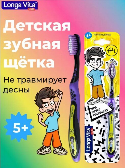 Детская зубная щетка Longa Vita Влад A4, от 5 лет, чёрная информация: