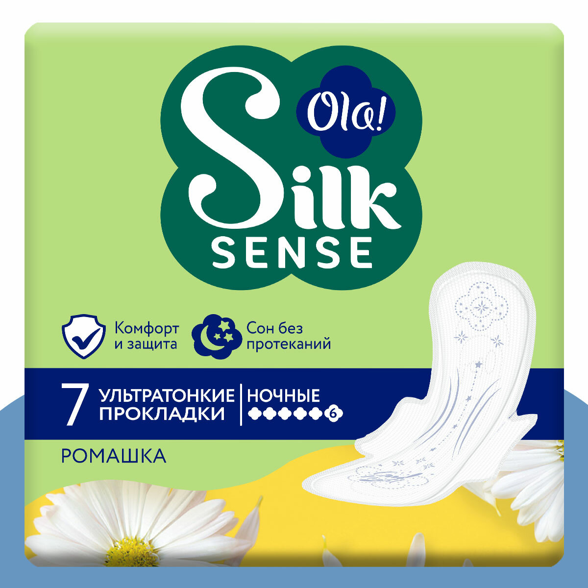 Отзывы на Прокладки женские ночные с крылышками Ola! Silk Sense Ultra Night, мягкая поверхность, аромат Ромашка 7 шт.