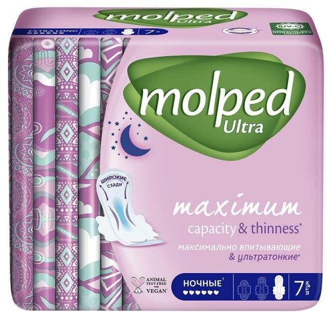 10 цен на Прокладки женские гигиенические MOLPED ULTRA Night (ночные) 7 шт