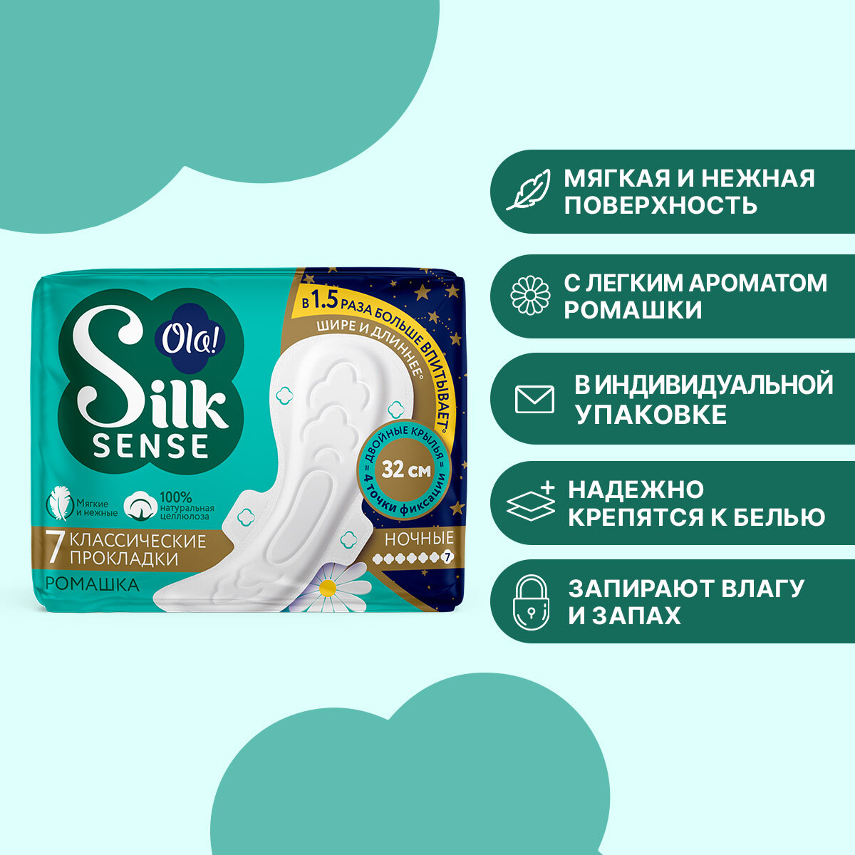 10 цен на Прокладки женские ночные с крылышками Ola! Silk Sense Classic Wings Singles Night, мягкая поверхность, аромат Ромашка, 7 шт.