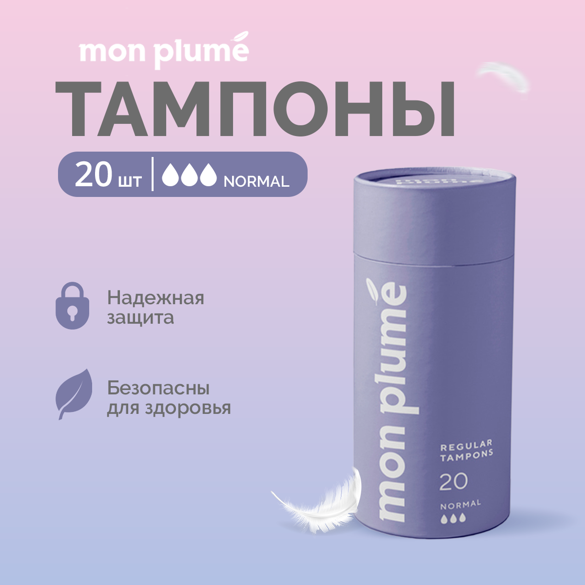 Тампоны MON PLUME Normal, 3 капли, 20шт. информация: