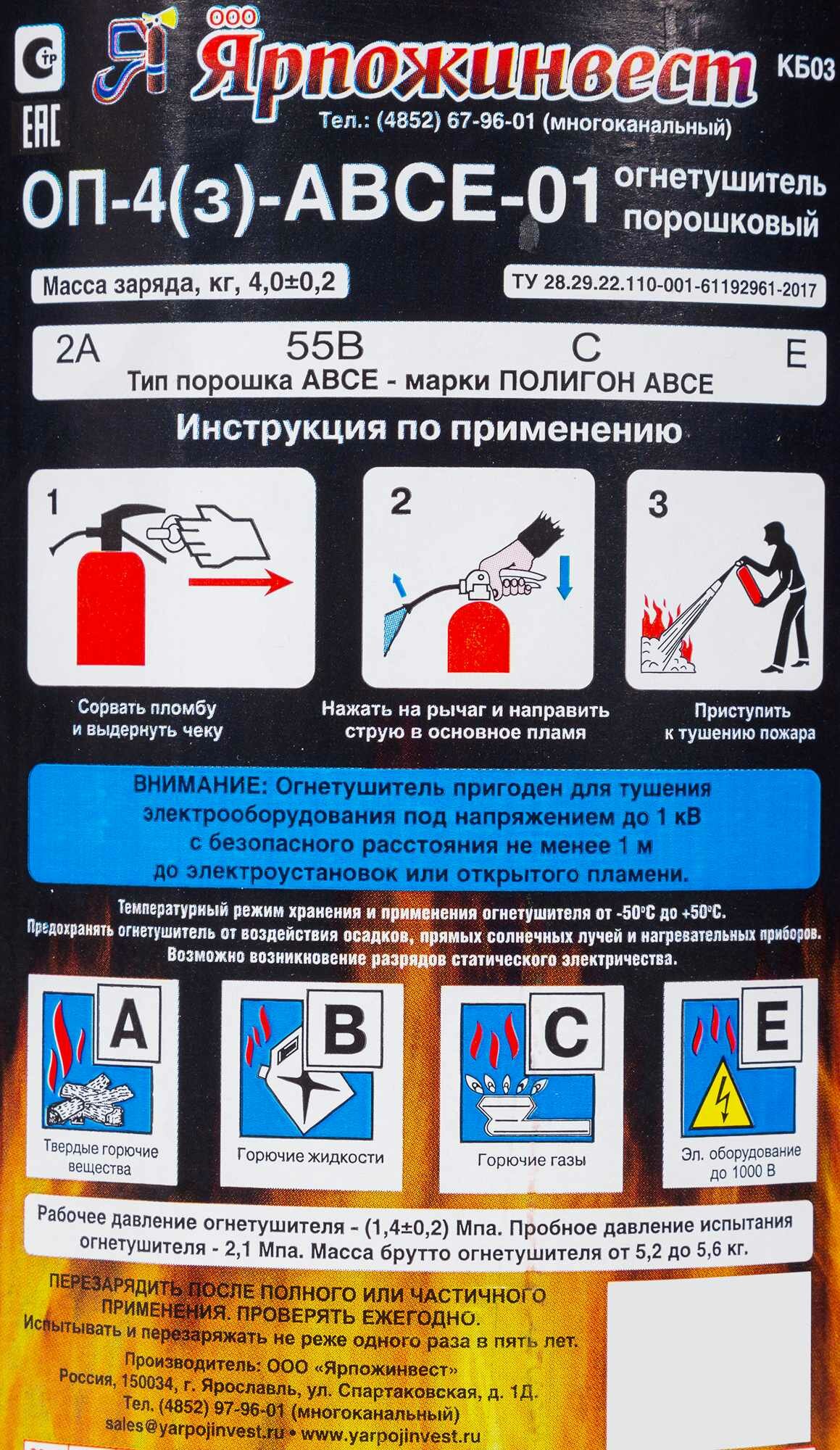 Огнетушитель ОП-4 (ABCE) (Ярпожинвест) информация: